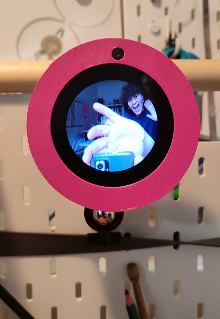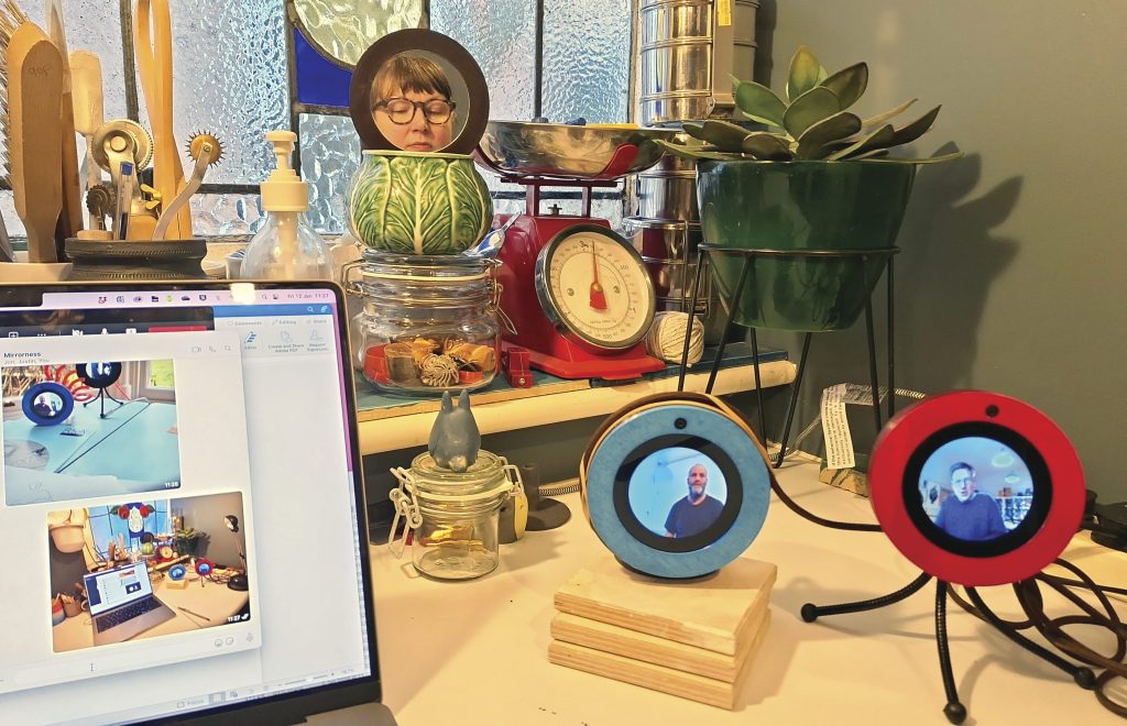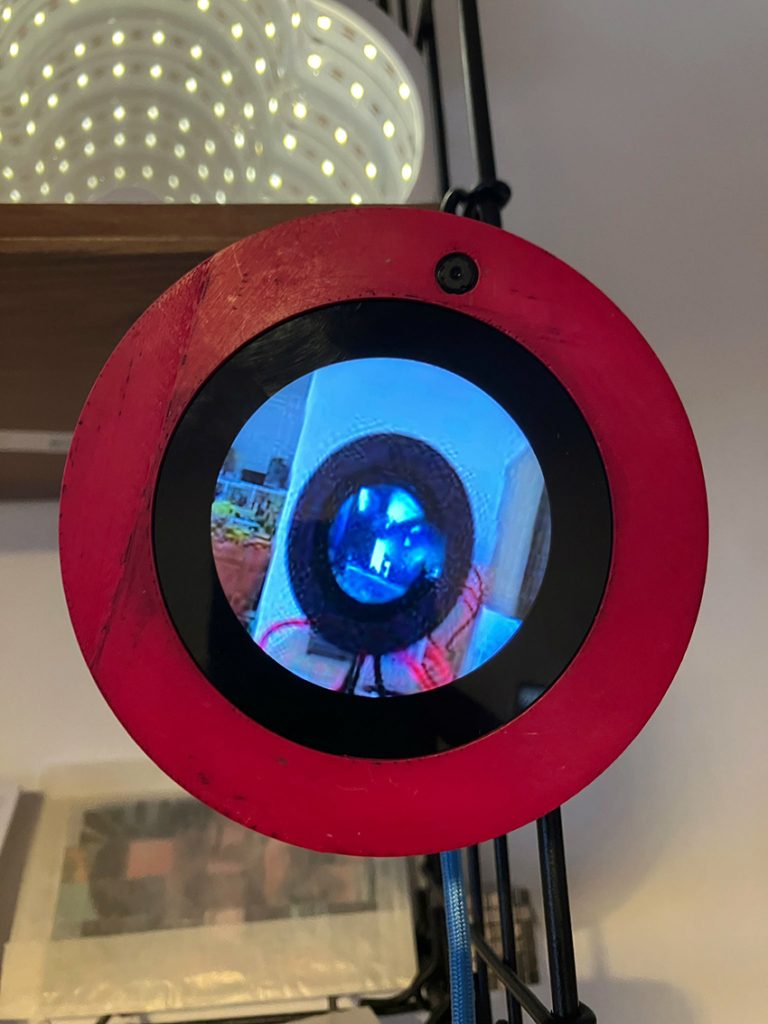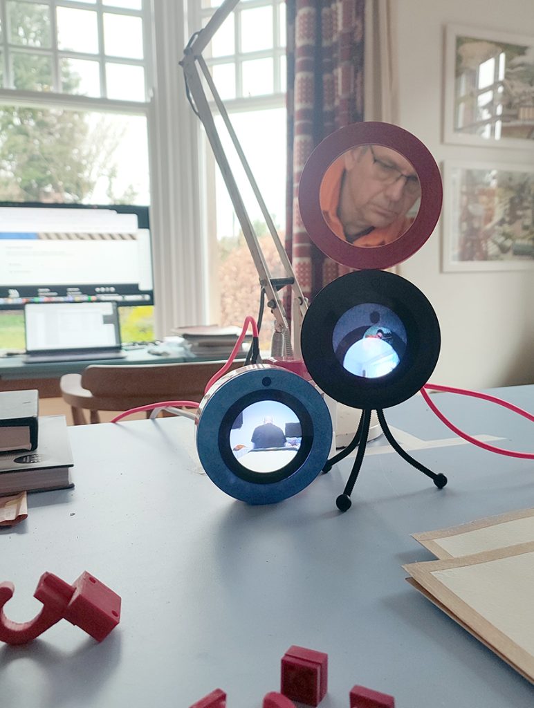 hiCams are a closed network of interconnected cameras, screens and mirrors. A camera on one hiCam sends an image to a screen on another. Within the network each pair provides a one-to-one viewing experience. Connection between them is direct — there is no third party (a server) that mediates the communication. Based on a Raspberry Pi Zero, cheap(ish) open-source components and the home 3D printing of parts, we aspired to make hiCams an accessible open technology, distinct in function, aesthetic and ethos to equivalent commercial offers.